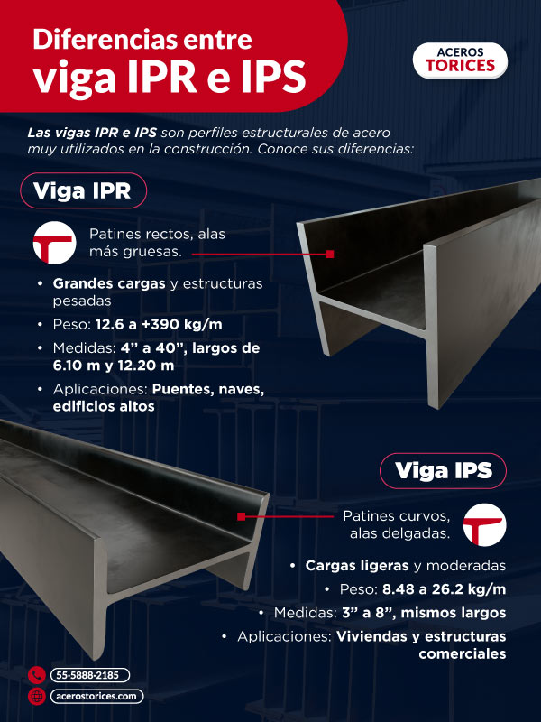 Diferencias visuales y técnicas entre viga IPR e IPS
